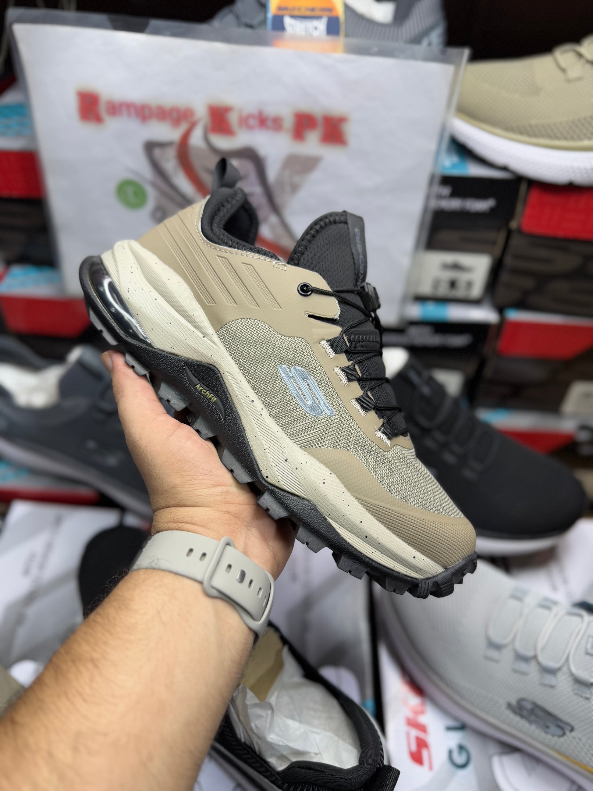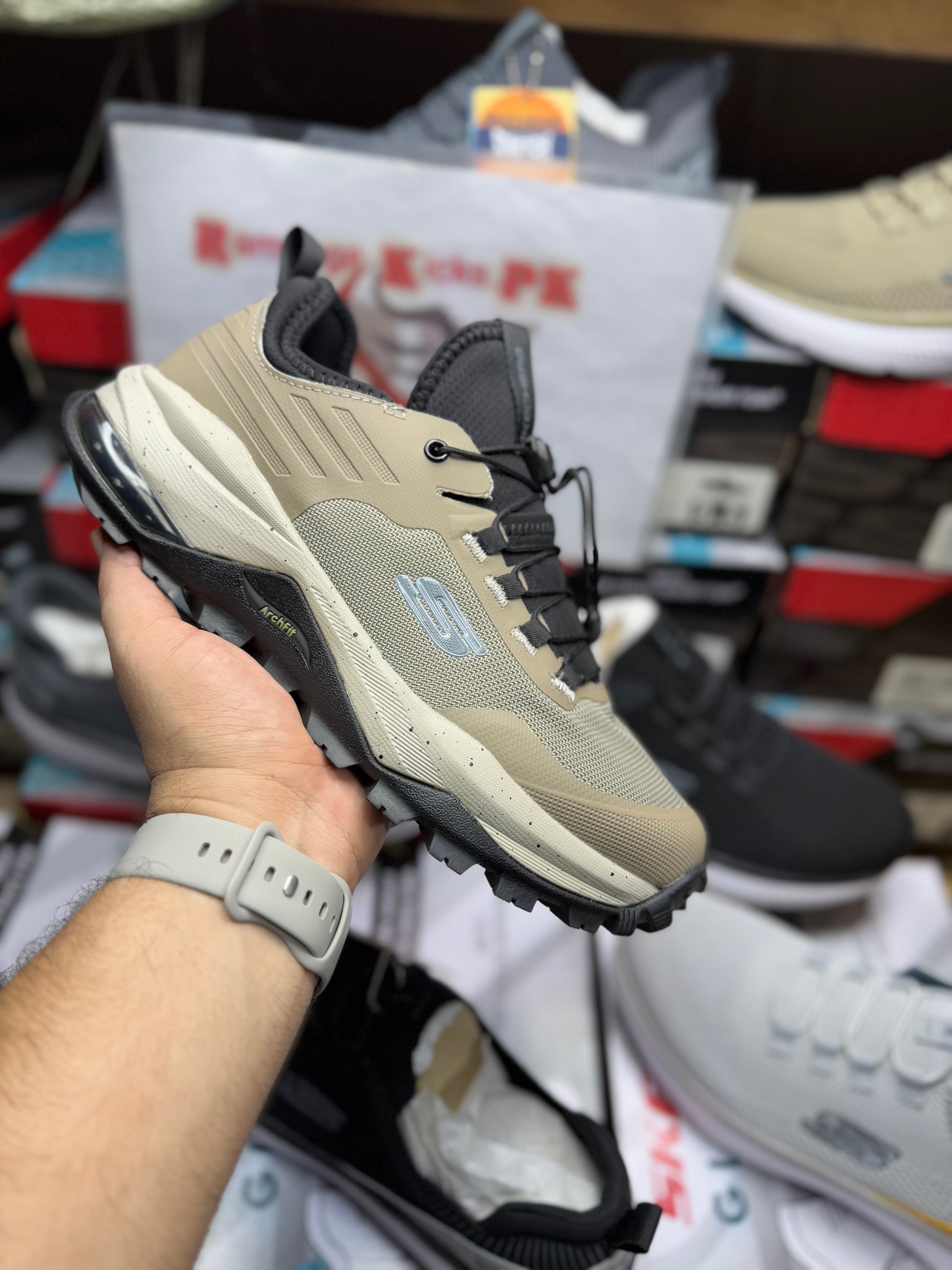 Step up your routine with easygoing comfort wearing Skechers Arch-fit 100% medicated sole with memory foam extremely light weight and comfortable with Goodyear rubber sole extra thick and air cooled with memory foam inner sole hiking trail gripper sole tenchnology Made in Vietnam 🇻🇳Â